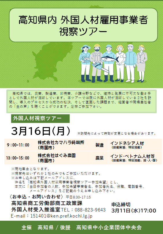高知県内外国人材雇用事業者視察ツアーのお知らせ!